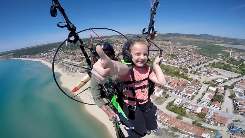 7 yaşındaki Zeynep, Erikli’de paramotorla uçarken İstiklal Marşı’nı ezbere okudu