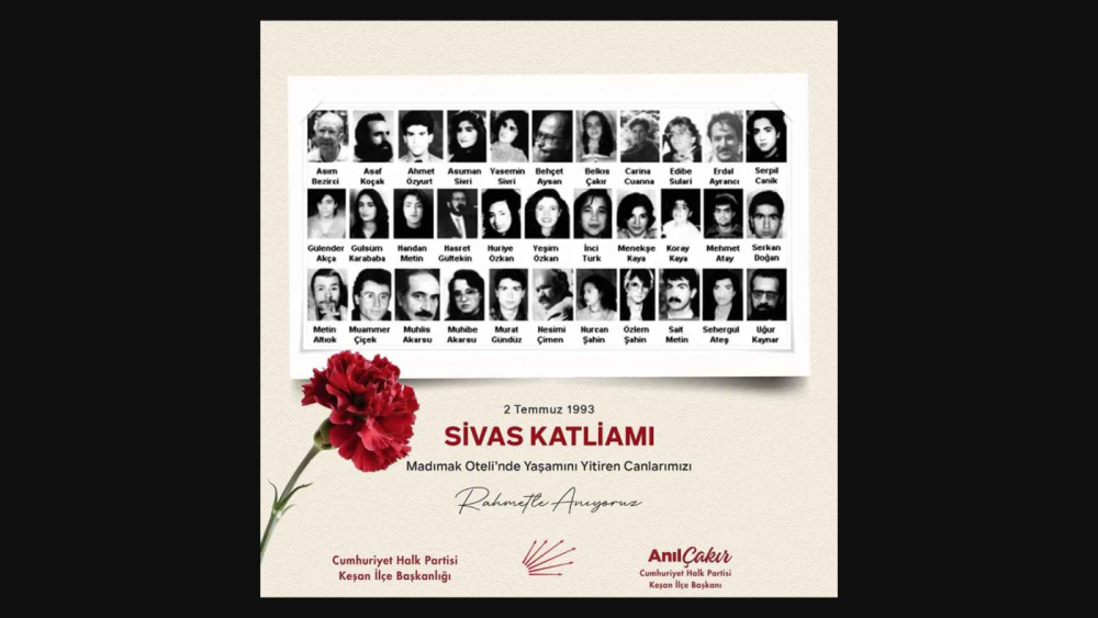 Cumhuriyet Halk Partisi (CHP) Keşan İlçe Başkanı Anıl Çakır, 2 Temmuz 1993’te Sivas’ta gerçekleşen ve tarihe Madımak Katliamı olarak geçen olayın 32. yılı dolayısıyla bir anma mesajı yayımladı.