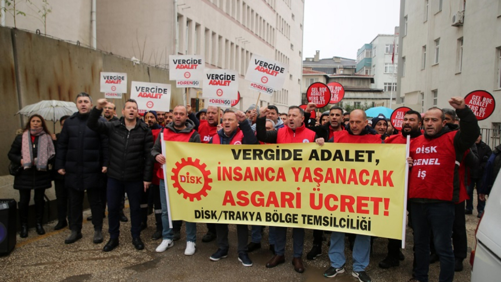 İşçiler, Keşan Vergi Dairesi önünden haykırdı: İnsanca ücret, vergide adalet istiyoruz