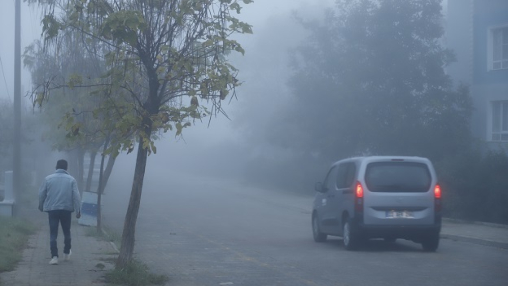 Keşan’da sabah saatlerinde sis etkili oldu. Sis nedeniyle binalar gözden kayboldu.