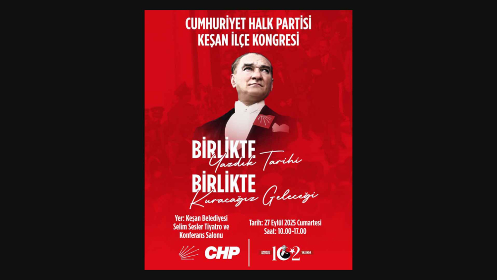 Cumhuriyet Halk Partisi (CHP) Keşan İlçe Başkanlığı Olağan Kongresi 27 Eylül 2025 Cumartesi günü gerçekleştirilecek.