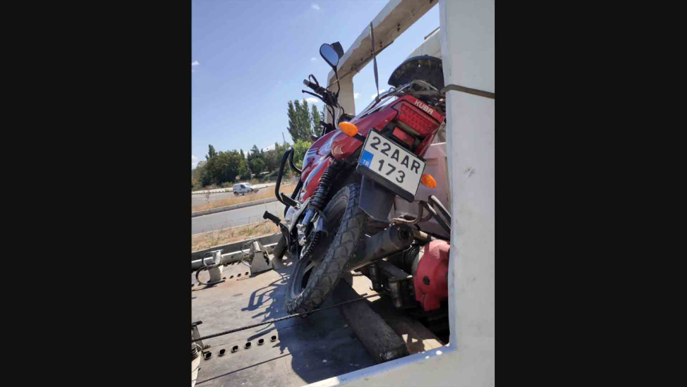 Keşan’da emniyet müdürlüğü binasına plakasız ve motor ile şase numarası kazınmış motosikletle giden sürücü N.K.’ye 86 bin TL para cezası kesildi.