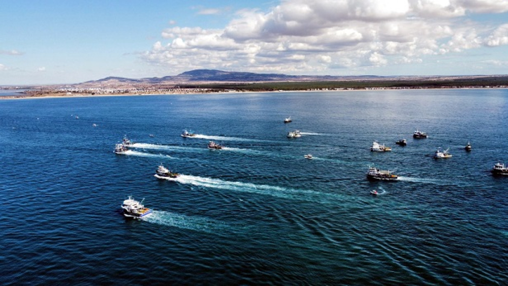 Enez’de 60 tekne ve bot, Sumud Filosu ve Gazze’ye destek için tur attı