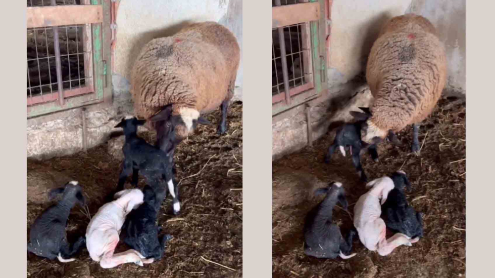 Enez’e bağlı Hasköy’de bir koyun, bir batında 4 kuzu yavruladı.