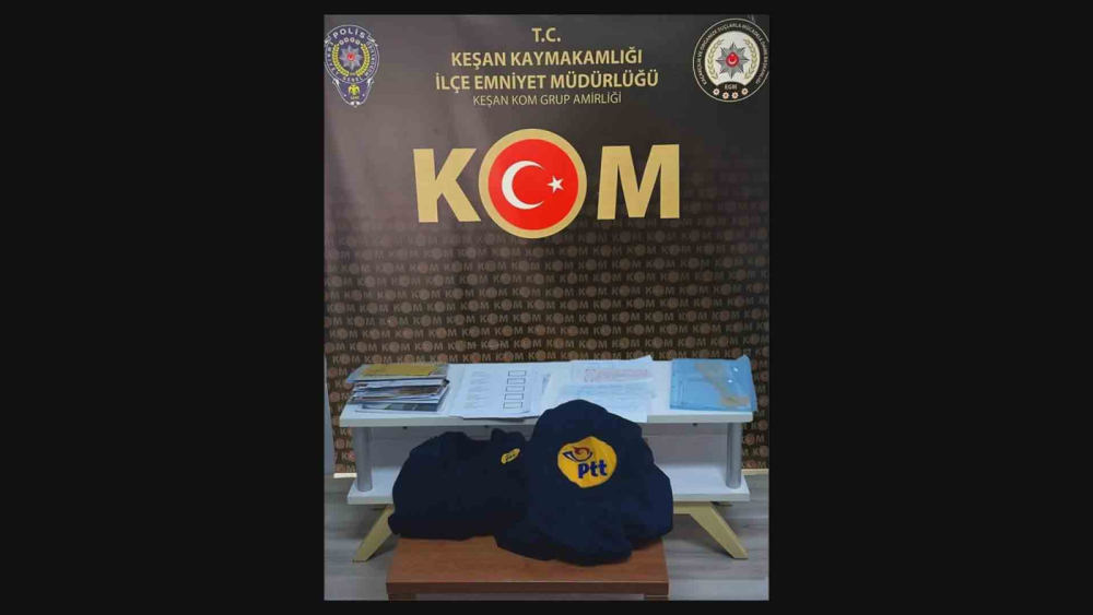 Edirne Emniyet Müdürlüğü Keşan Kaçakçılık ve Organize Suçlarla Mücadele Amirliği ile İpsala İlçe Emniyet Müdürlüğü ekiplerince ortak yürütülen çalışmada, dolandırıcılık ve sahtecilik suçlarından kaydı bulunan Tayfun B.'nin, PTT üniforması giyerek belli adreslere gittiği, hazırladığı tertibatla vatandaşların kargo teslim tutanağına attıkları imzaları boş senetlere geçirdiği tespit edildi. Tayfun B., polis ekiplerince yakalanarak, gözaltına alındı. Tayfun B.’nin evinde yapılan aramada, 'PTT' ibaresi bulunan mont ve kazak, teslim tutanaklarının altına yerleştirilmiş boş senetler ve üzeri doldurulmuş senetler ele geçirildi. Tayfun B.'nin emniyetteki işlemleri sürüyor.