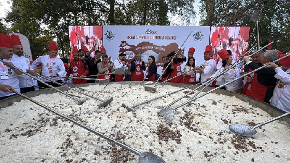 Edirne Valiliği tarafından bu yıl 2'nci kez gerçekleştirilen 'Topraktan Sofraya Edirne Gastronomi Festivali'nin 3'üncü gününde, Türkiye'nin en büyük tenceresinde İpsala pirincinden 6 ton pilav pişirildi. Kentin Söğütlük Millet Bahçesi'nde gerçekleştirilen etkinliğe Edirne Valisi Yunus Sezer, AK Parti Edirne Milletvekili Fatma Aksal, Cumhurbaşkanlığı Tarım ve Gıda Politikaları Kurulu Üyesi ve Tüm Restoranlar ve Turizmciler Derneği Genel Başkanı Şef Ramazan Bingöl, Bedri Usta lakaplı ünlü kebapçı Bedrettin Aydoğdu, pilav restoranı zinciri sahibi Nedim Şahin ile vatandaşlar katıldı. Dua edilmesinin ardından dev tencerenin kapağı açılarak, protokol üyeleri ve şefler tarafından 6 ton pilava kavurma eklenerek karıştırıldı. Hazırlanan pilav, vatandaşlara ikram edilirken, etkinliğe gelen çok sayıda vatandaş, pilav alabilmek için uzun kuyruklar oluşturdu.