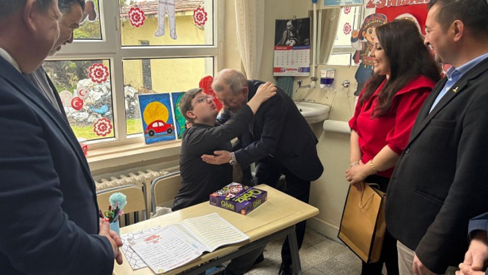 İlçe Milli Eğitim Müdürü Sercan Kemik ve Yenimuhacir Belediye Başkanı Tamer Kıral’ ın eşlik ettiği, Okul Müdürü Hüseyin Berkel’in de yer aldığı ziyarette öğrenciler ile bir araya gelen Kaymakam Mercan, her bir çocuk ile yakından ilgilendi. Ziyareti esnasında, özel eğitim 5. sınıf öğrencimiz Çınar Kaydı ile de samimi bir sohbet gerçekleştiren Mercan, Çınar’ın 23 Nisan neşesine bir hediye ile anlam katarak, mutluluğuna ortak oldu. Çocukların yüzündeki tebessümün en büyük mutluluk olduğunu ifade eden Aziz Mercan, tüm çocukların 23 Nisan Ulusal Egemenlik ve Çocuk Bayramı’nı kutladı.