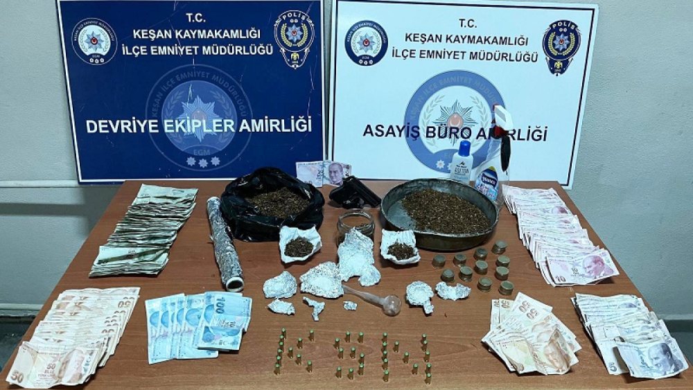 Keşan’da polisin bir eve düzenlediği operasyonda, bir miktar uyuşturucu madde ve silah ele geçirildi, gözaltına alınan K.D., tutuklandı.