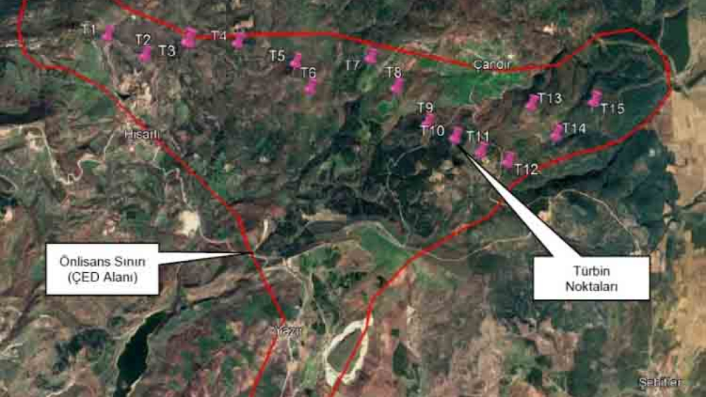Dosyada, türbinlerin yerleşim yerlerindeki hanelere kuş uçuşu mesafelerine de yer verildi. Buna göre T1 Hisarlı köyündeki bir haneye 950 metre, T2 Hisarlı köyündeki bir haneye 700 metre, T3 Hisarlı köyündeki bir haneye bin 100 metre, T13 Çandır köyündeki bir haneye 800 metre, T11 Yazır köyündeki bir haneye 3 bin metre yakınlıkta olacak.