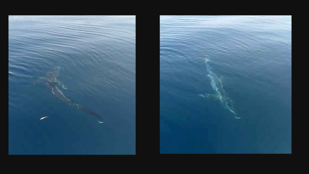 Saros Körfezi’ne kıyısı bulunan Erikli sahili açıklarında balıkçılar yüzeye çıkan yaklaşık 2,5 metre uzunluğundaki köpekbalığını cep telefonuyla görüntüledi.