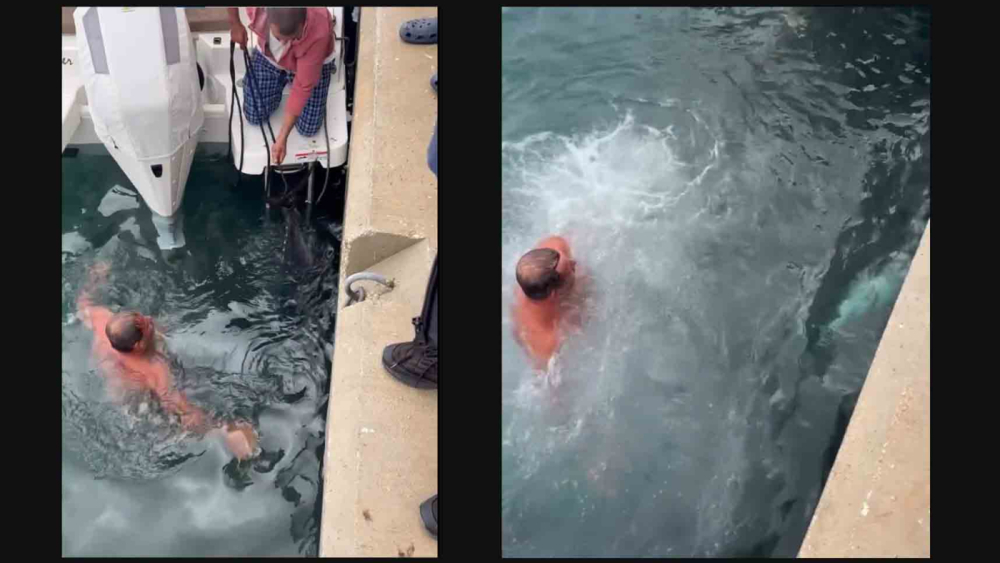 Soğuk havaya aldırış etmeden denize girip kıyıya vuran orkinosu çıkardı
